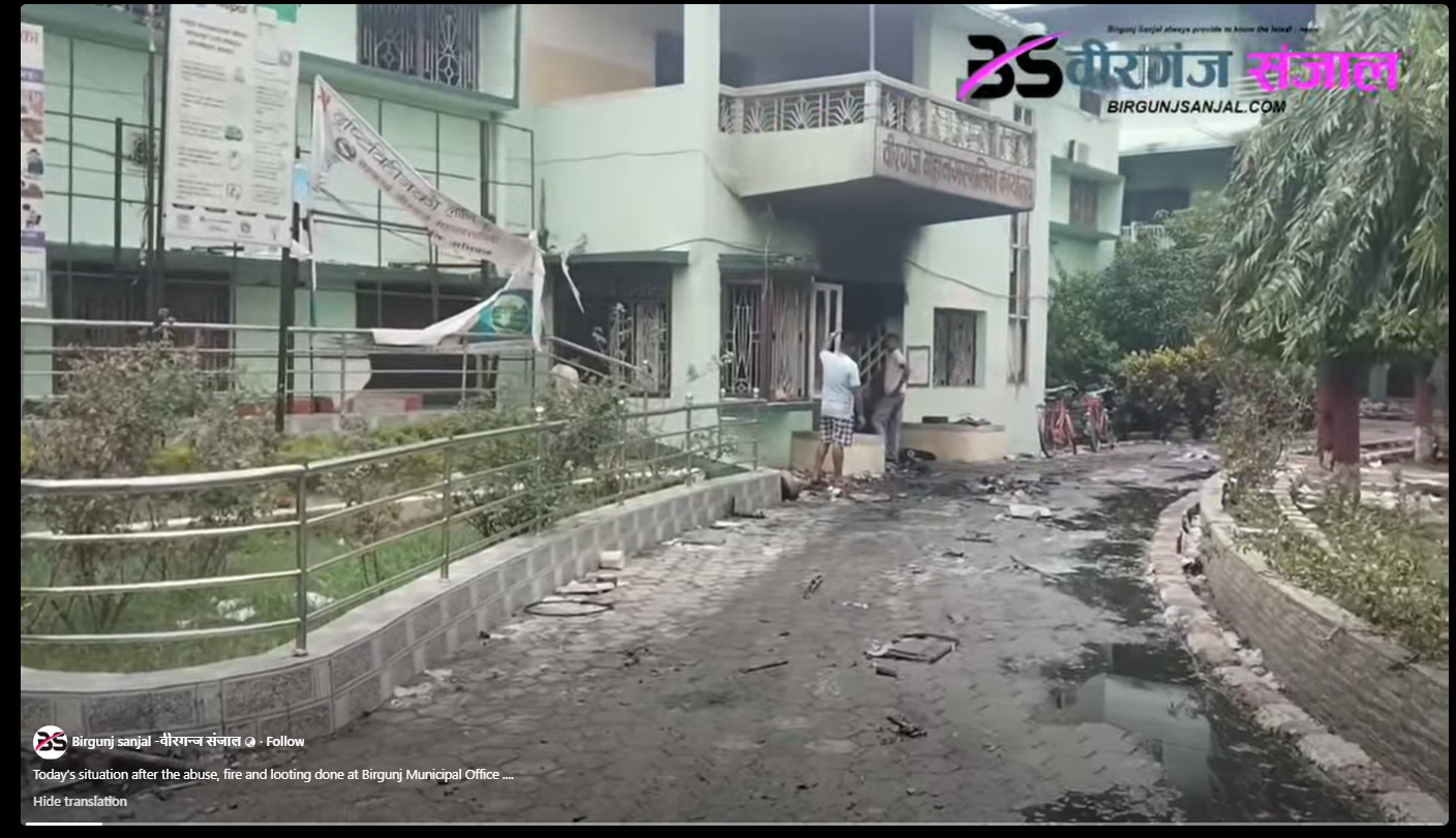 पड़ताल के दौरान हमें बीरगंज संजाल के फेसबुक अकाउंट पर ही 10 सितंबर 2025 को अपलोड किया गया वीडियो मिला. जिसमें वायरल वीडियो से मिलते-जुलते दृश्य मौजूद थे. पोस्ट के कैप्शन में वीडियो को बीरगंज नगरपालिका कार्यालय में प्रदर्शन के दौरान हुई तोड़फोड़ और आगजनी के बाद का बताया गया था.