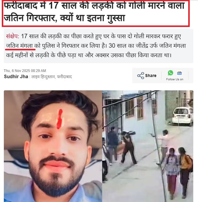 स्पष्ट है कि हरियाणा के फरीदाबाद में दिनदहाड़े छात्रा पर गोली चलाने वाला आरोपी मुस्लिम नहीं, बल्कि हिंदू है. इस घटना में कोई सांप्रदायिक एंगल नहीं है.