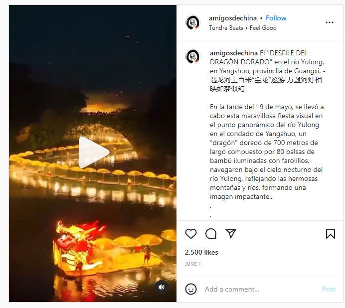 दावे की सत्यता जानने के लिए हमने Invid की मदद से वीडियो के कुछ कीफ्रेम बनाए। एक कीफ्रेम को Yandex की मदद से रिवर्स सर्च किया। हमें amigosdechina नामक पेज पर एक वीडियो मिला। वीडियो में लिखे डिस्क्रिप्शन के मुताबिक, 19 मई 2022 को चीन के यूलोंग नदी के पास एक ड्रैगन परेड आयोजित किया गया था। इस वीडियो में मौजूद दृश्य, वायरल वीडियो में मौजूद दृश्य से मिलते जुलते हैं।