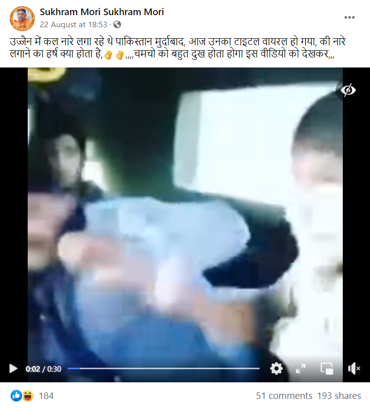 इसी बीच सोशल मीडिया पर एक वीडियो शेयर कर यह दावा किया गया कि उज्जैन में कथित तौर पर पाकिस्तान जिंदाबाद के नारे लगाने वालों की पुलिस द्वारा जमकर पिटाई की गई.