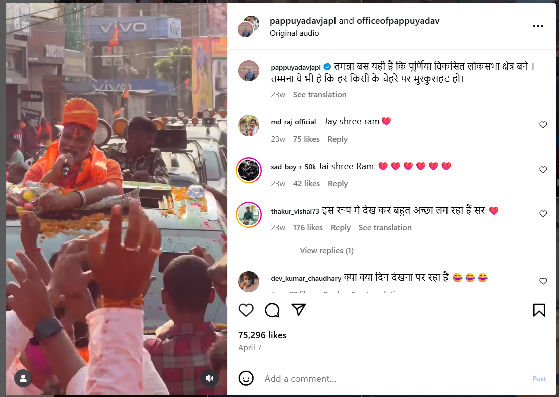 Instagram Post By @pappuyadavjapl Dated April 7, 2025