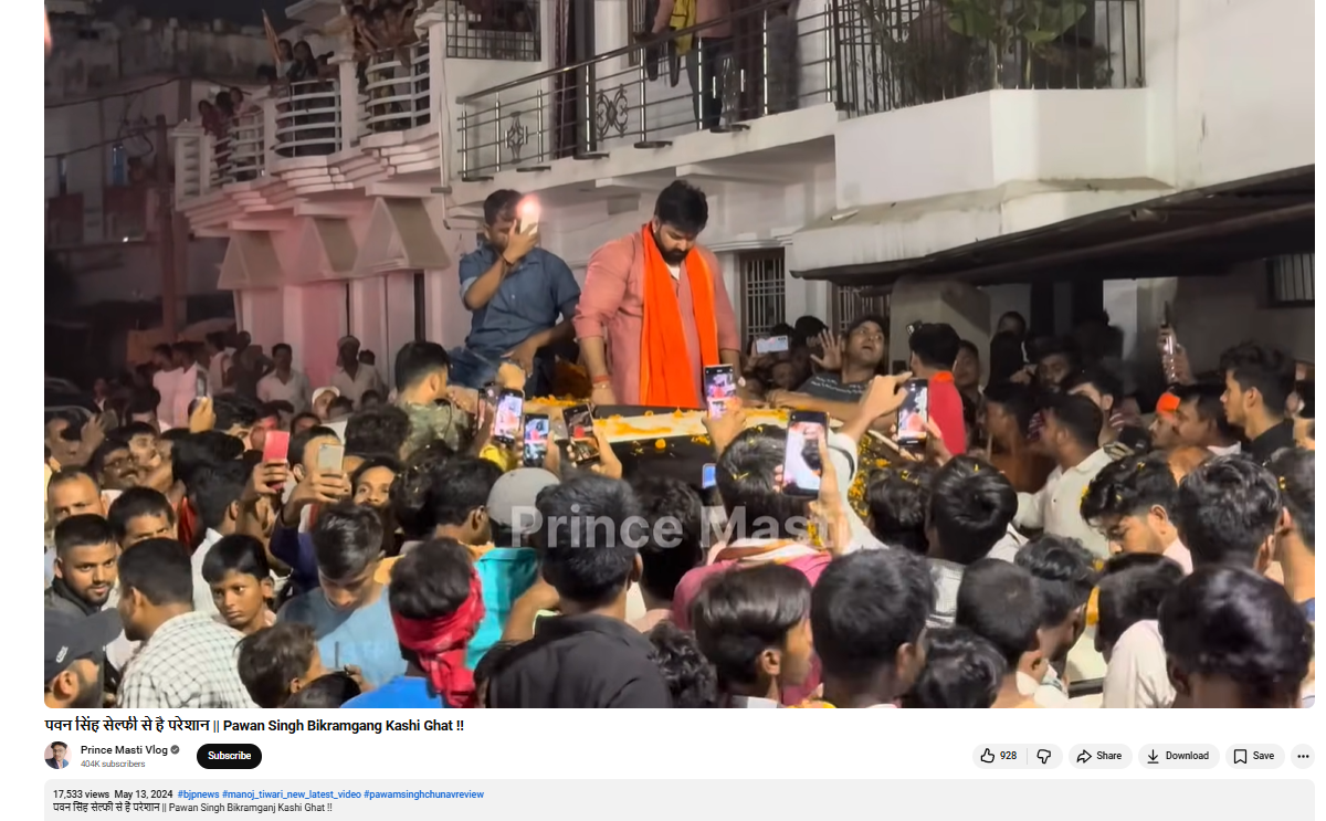 पड़ताल के दैरान हमें एक यूट्यूब अकाउंट पर भी 13 मई 2024 को अपलोड किया गया एक वीडियो मिला, जिसमें पवन सिंह पिछले साल काराकाट लोकसभा चुनाव के दौरान निर्दलीय प्रत्याशी के रूप में बिक्रमगंज में जनसंपर्क करते हुए नजर आ रहे थे. इन दृश्यों में भी पवन सिंह उन्हीं कपड़ों में नजर आ रहे हैं, जो वायरल वीडियो में मौजूद है.
