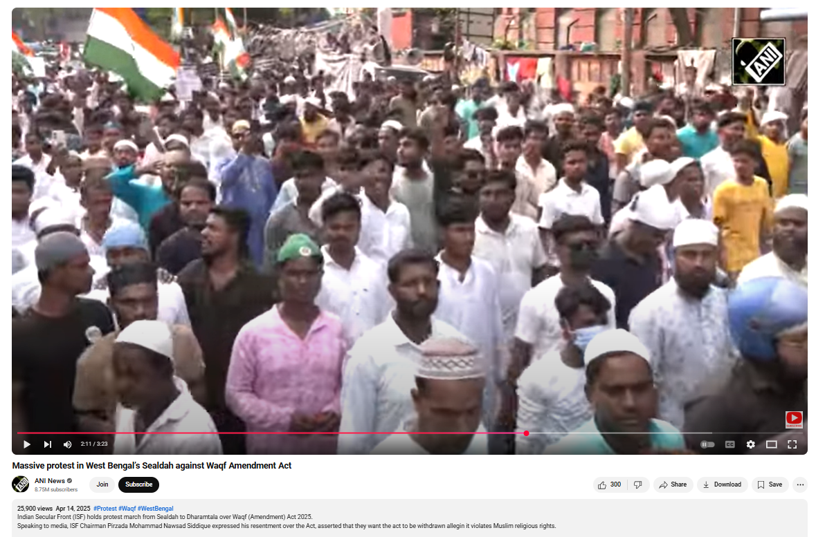 तस्वीर के साथ मौजूद कैप्शन में बताया गया था कि यह दृश्य पश्चिम बंगाल के एक राजनीतिक दल इंडियन सेक्युलर फ्रंट द्वारा वक्फ संशोधन अधिनियम 2025 के खिलाफ 14 अप्रैल 2025 को किए गए प्रदर्शन के दौरान का है. यह प्रदर्शन सियालदह स्टेशन से शुरू होकर रामलीला मैदान तक गया था.