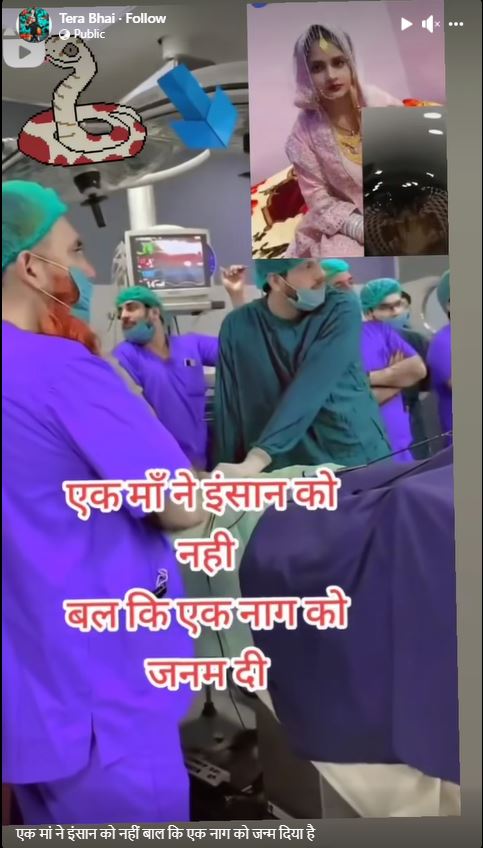 सोशल मीडिया पर एक वीडियो वायरल है, जिसे शेयर कर दावा किया जा रहा है कि एक महिला ने एक सांप को जन्म दिया है। वायरल वीडियो में एक शादीशुदा महिला की तस्वीर के अलावा ऑपरेशन थिएटर के दृश्य भी नज़र आ रहे हैं।