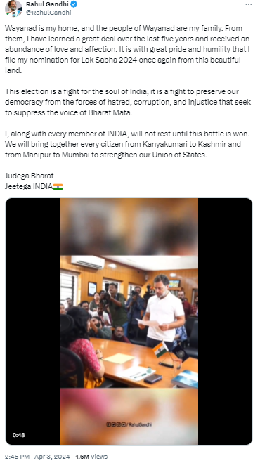 Video Posted by Rahul Gandhi X account on 3rd April 2024