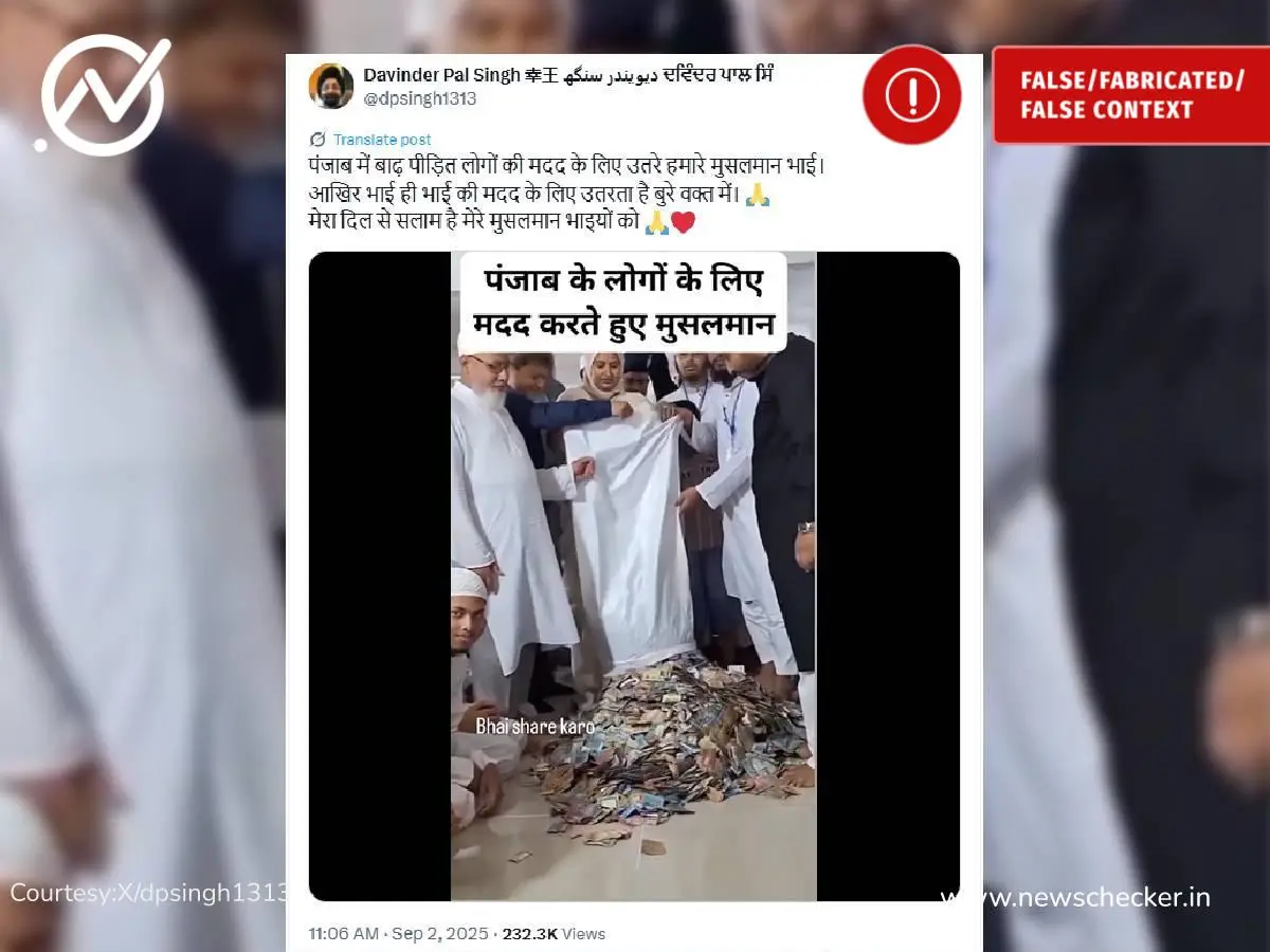 सोशल मीडिया पर एक वीडियो के जरिए दावा किया जाने लगा कि मुस्लिम समाज के लोग पंजाब के बाढ़ पीड़ितों की मदद के लिए पैसे इकट्ठा कर रहे हैं। हमारी जांच में यह दावा गलत साबित हुआ। फैक्ट चेक यहां पढ़ें।