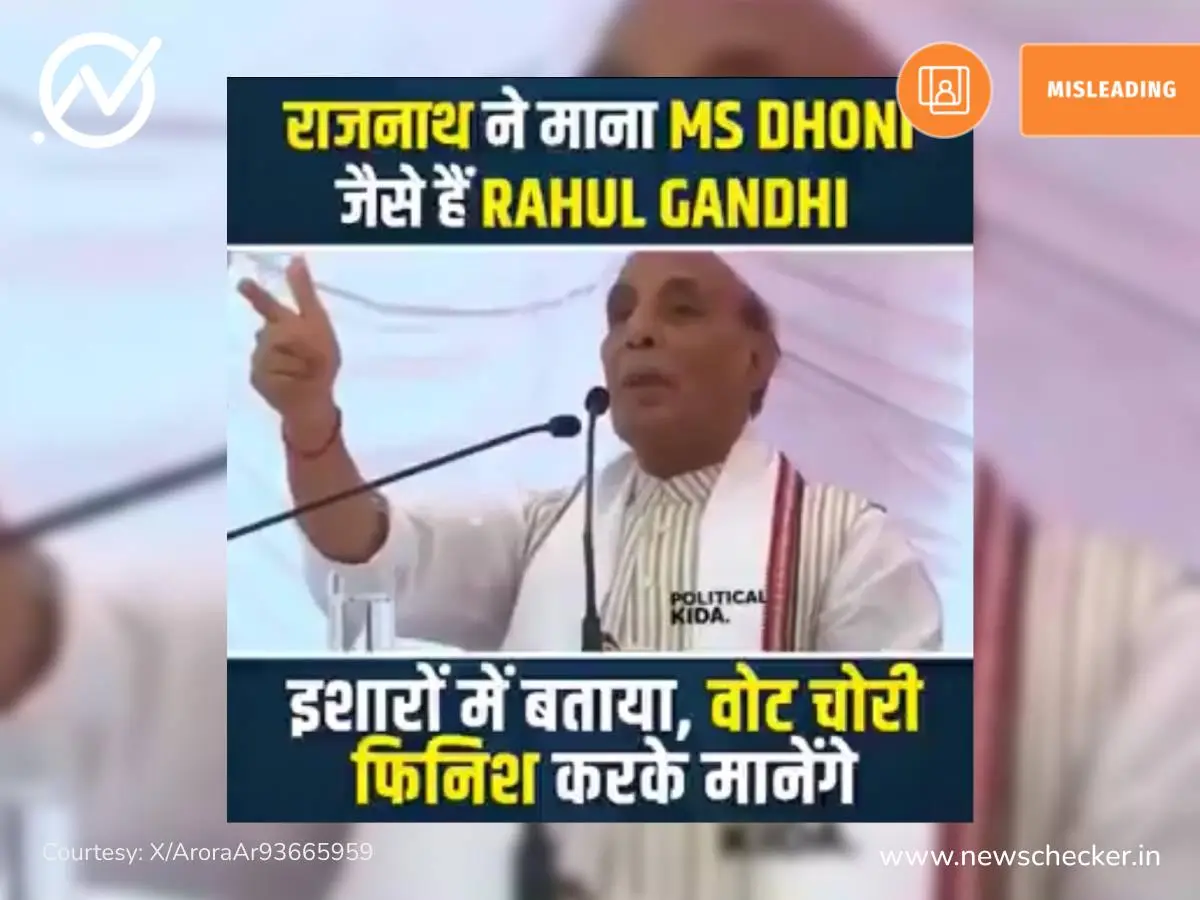 देश के रक्षामंत्री राजनाथ सिंह के एक वीडियो को शेयर कर दावा किया गया कि ‘वोट चोरी’ विवाद के बीच उन्होंने कांग्रेस नेता राहुल गांधी की तारीफ की है। हालांकि, हमारी पड़ताल में ये दावे गलत साबित हुए।