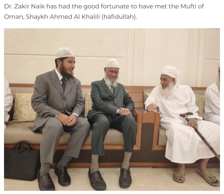 ज़ाकिर नाइक ने भी 23 मार्च को अपने एक्स हैंडल और फ़ेसबुक पेज पर ओमान के मुफ़्ती से मुलाक़ात की तस्वीरें पोस्ट की थीं.