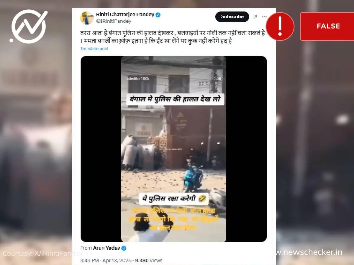 पथराव के एक वीडियो को शेयर कर इसे मुर्शिदाबाद में हुई हिंसा का बताकर शेयर किया जाने लगा। हमारी पड़ताल में यह दावा फर्जी साबित हुआ। फैक्ट चेक यहां पढ़ें।