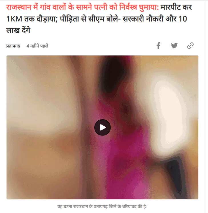 गांव लाने के बाद महिला के पति ने ग्रामीणों के सामने ही उसको निर्वस्त्र किया और घुमाया. महिला ने इस दौरान वहां मौजूद लोगों से छोड़ने की गुहार भी लगाई, लेकिन किसी ने नहीं बचाया. इस घटना का वीडियो वायरल होने के बाद पुलिस ने इस मामले में 10 लोगों के ख़िलाफ़ मामला दर्ज किया था. रिपोर्ट में यह भी बताया था कि तत्कालीन मुख्यमंत्री अशोक गहलोत ने पीड़िता से बात कर सरकारी नौकरी और 10 लाख मुआवजे देने का ऐलान भी किया था.