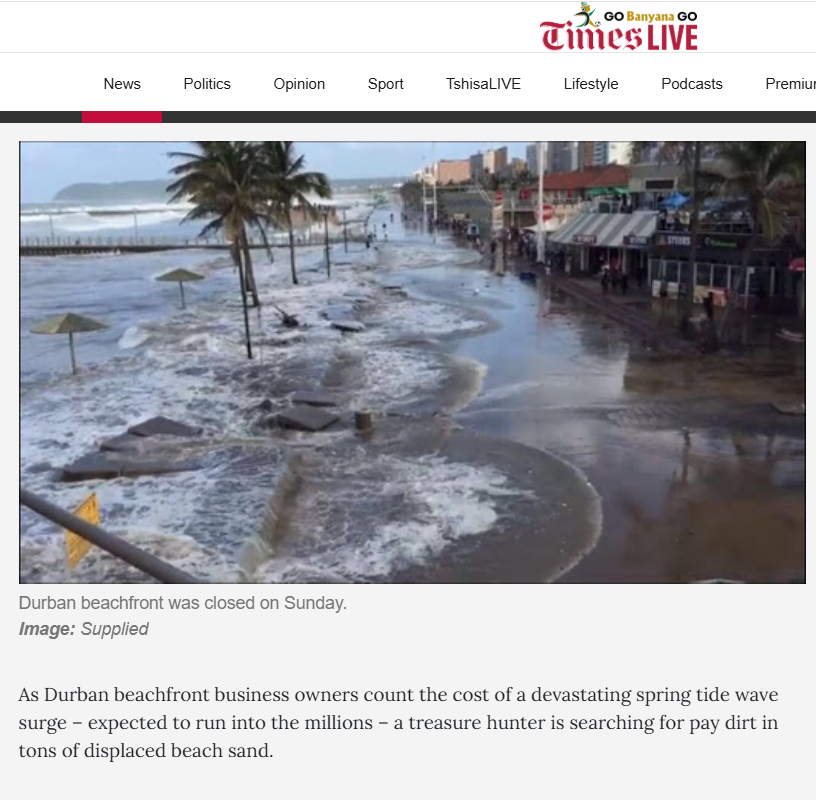 पड़ताल के दौरान हमें 13 मार्च 2017 को एक अफ़्रीकी न्यूज आउटलेट की वेबसाइट पर प्रकाशित रिपोर्ट भी मिली. रिपोर्ट में बताया गया था कि 12 मार्च 2017 को दक्षिण अफ्रीका के डरबन में समुंद्र तट पर एक मिनी सुनामी आई थी, जिसकी वजह से आसपास काफी नुकसान पहुंचा और लोगों को समुद्र तट पर जाने से बचने की सलाह भी दी गई थी.
