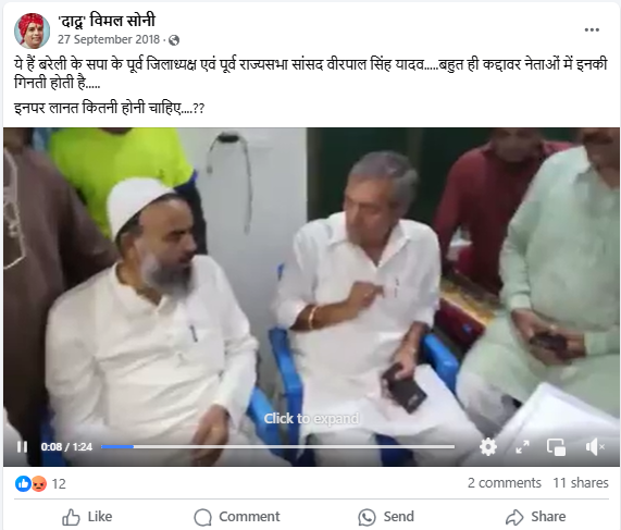 इस लंबे वीडियो में वीरपाल सिंह यादव कहते नजर आ रहे हैं कि “”जब मौलाना तौकीर को पकड़ा गया था तो सबसे पहले मैंने बयान दिया था कि ये ज्यादती है और हम इसे बर्दाश्त नहीं करेंगे. हम तो कांवड़ वालों के विरोध में हैं. जब लोग कांवड़ यात्रा का स्वागत कर रहे थे, तब भी मैंने कहा कि ये लोग दारू पीने वाले हैं, गांजा पीने वाले हैं, ये कभी भगत नहीं हो सकते”.