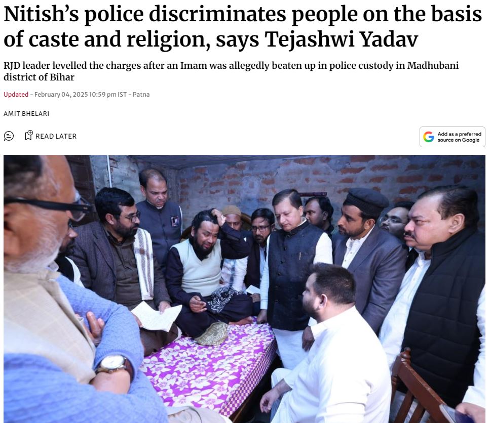 इस बारे में न्यूज़ रिपोर्ट्स की जांच करने पर पता चला कि यह घटना बिहार के मधुबनी ज़िले की है. मोहम्मद फिरोज नाम के व्यक्ति ने पुलिस पर यातना देने का आरोप लगाया था, जिसके बाद आरजेडी नेता और पूर्व उपमुख्यमंत्री तेजस्वी यादव 3 फ़रवरी को उनसे मिलने उनके घर पहुंचे.
