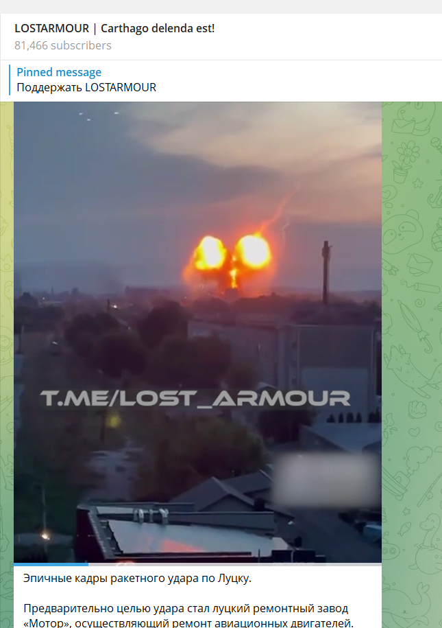 इसके बाद हमें यह वीडियो युद्ध से जुड़े वीडियोज और तस्वीरें पोस्ट करने वाले एक टेलीग्राम अकाउंट पर 6 जून 2025 को अपलोड किया गया मिला. इस वीडियो के साथ मौजूद कैप्शन में भी इसे लुत्स्क शहर पर हुए हमले का ही बताया गया था.