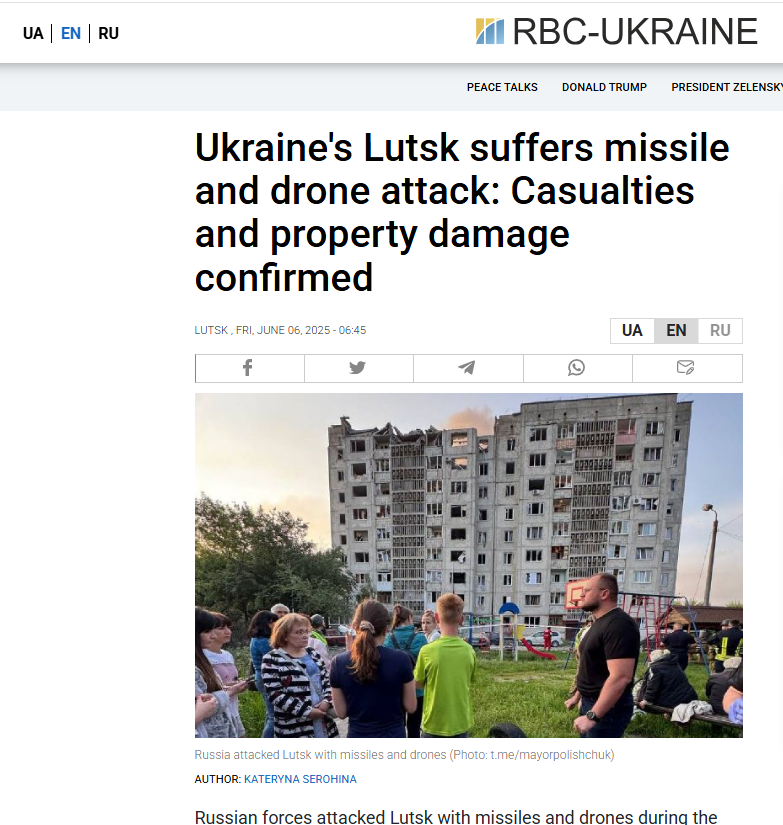 जांच में हमें एक यूक्रेनी न्यूज आउटलेट की वेबसाइट पर भी 6 जून को हुए हमले से जुड़ी रिपोर्ट मिली. इस रिपोर्ट में लुत्स्क के मेयर के हवाले से बताया गया था कि हमले में एक आवासीय इमारत का हिस्सा टूट गया और कई घरों के छत व खिड़कियाँ क्षतिग्रस्त हुई थीं. .