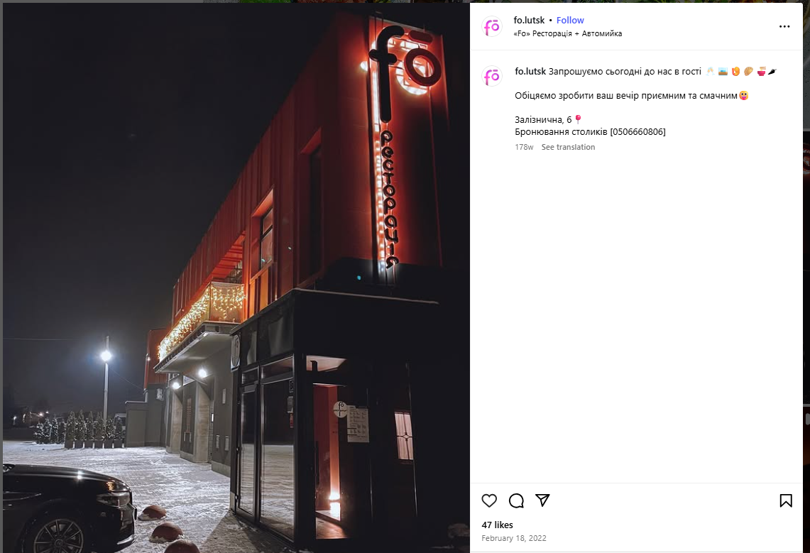 इसके अलावा, हमने वीडियो में दिख रहे उस रेस्टोरेंट को भी जियोलोकेट किया, तो पाया कि यह लुत्स्क के ज़ालिज़निचना स्ट्रीट पर मौजूद रेस्टोरेंट और कार वॉश FO है.