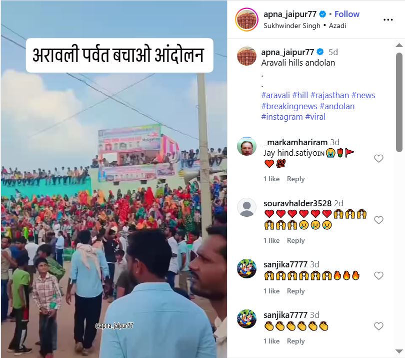 इस बीच, इंस्टाग्राम पर एक यूज़र ने वायरल वीडियो शेयर करते हुए कैप्शन लिखा, “अरावली पर्वत की तरफ देखा भी सरकार ने तो पूरा राजस्थान सड़कों पर उतर आएगा.” पोस्ट का आर्काइव यहां देखा जा सकता है. इसी तरह के अन्य पोस्ट भी सोशल मीडिया पर शेयर किए गए हैं.
