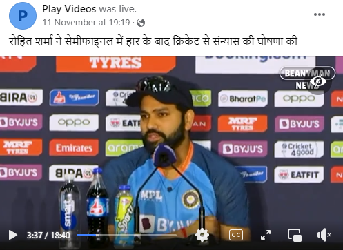 अपडेट- रोहित शर्मा के संन्यास लेने वाला दावा इस खबर में 13 नवंबर 2022 को जोड़ा गया है.