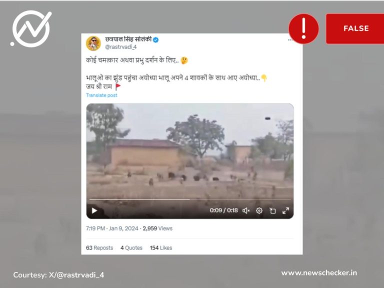 सोशल मीडिया पर एक वीडियो को शेयर कर दावा किया गया कि जामवंत के रूप में भालुओं का एक झुण्ड अयोध्या जा रहा है। हमारी जांच में यह दावा फर्जी साबित हुआ। फैक्ट चेक यहां पढ़ें।