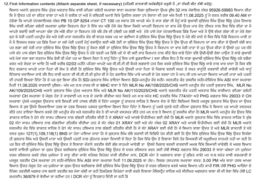 इसके अलावा, हमें इस संबंध में समराला पुलिस स्टेशन में 11 अगस्त 2025 को दर्ज की गई एफआईआर भी मिली. इस एफआईआर में भी आरोपी के तौर पर सुरिंदर सिंह उर्फ़ बिल्लू और पीड़ित के तौर पर कुलतार सिंह, उनकी पत्नी मनप्रीत कौर एवं उनकी मां शरणजीत कौर का नाम मौजूद था. इसके अलावा एफआईआर में रंजिश की वजह घर में सीसीटीवी कैमरे लगाने को बताया गया था. कुलतार के अनुसार, बिल्लू नशा करने और बेचने का आदी है और सीसीटीवी कैमरे लगने की वजह से वह खार खा गया था.