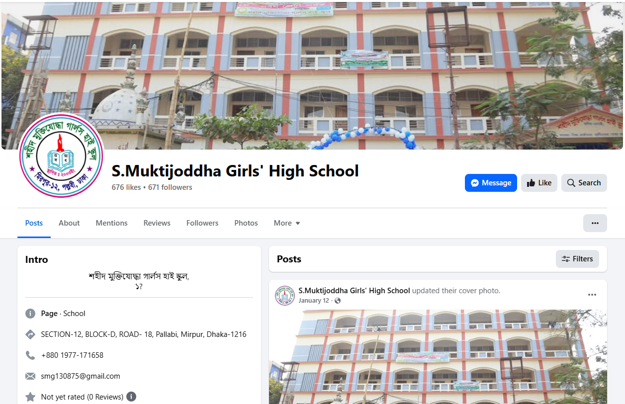 कीवर्ड सर्च करने पर हमें स्कूल का फेसबुक पेज मिला, जिसका लोगो छात्रा के यूनिफॉर्म पर बने लोगो से हूबहू मैच करता है।