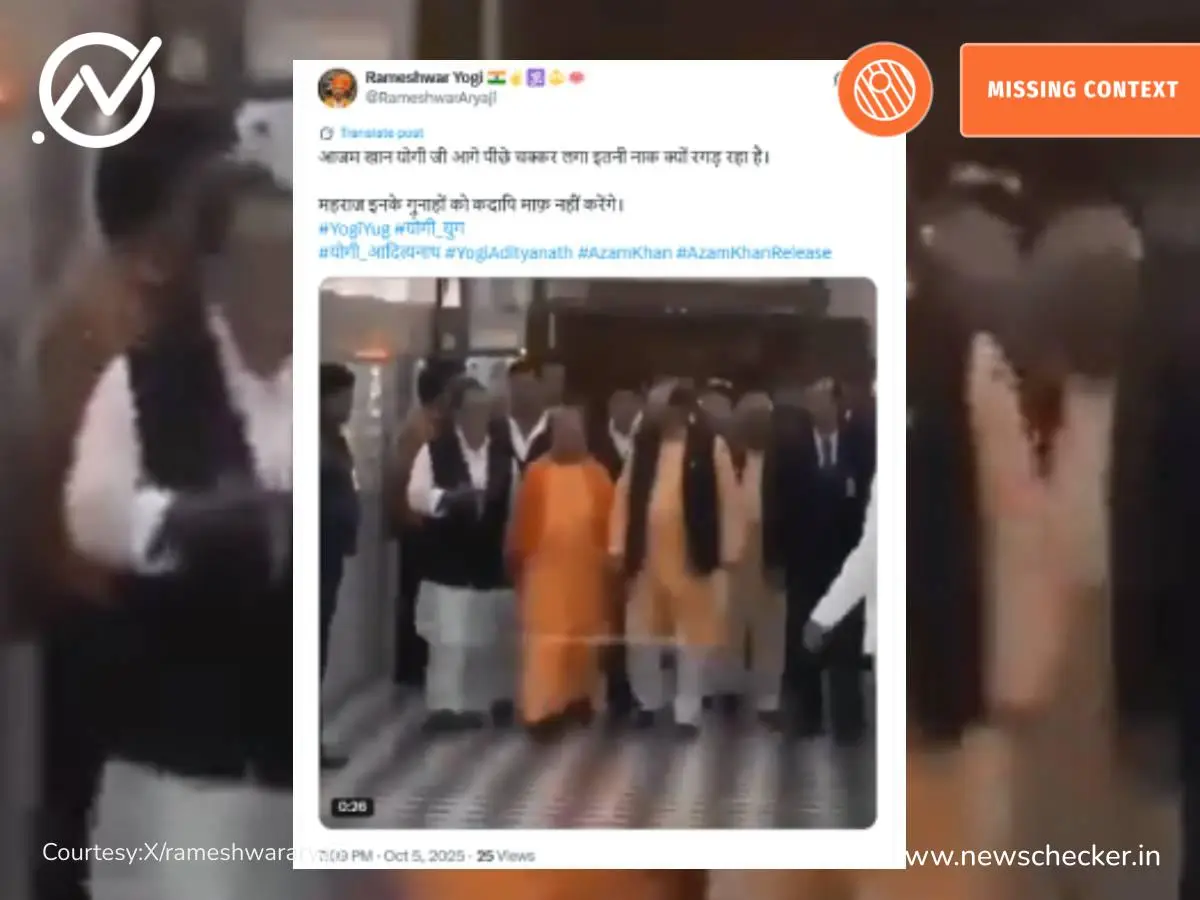 सोशल मीडिया पर एक वीडियो शेयर कर दावा किया गया कि जेल से निकलने के बाद सपा नेता आजम खान ने यूपी के सीएम योगी आदित्यनाथ से मुलाकात की। हमारी जांच में यह दावा गलत साबित हुआ। फैक्ट चेक यहां पढ़ें।