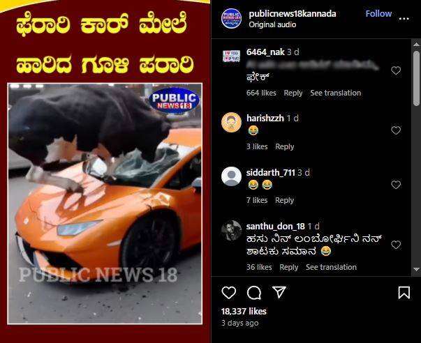ಫೆರಾರಿ ಕಾರಿನ ಮೇಲೆ ಹಾರಿದ ಗೂಳಿ ಎಂದು ವೀಡಿಯೋ ಒಂದು ಸಾಮಾಜಿಕ ಮಾಧ್ಯಮದಲ್ಲಿ ವೈರಲ್ ಆಗುತ್ತಿದೆ.