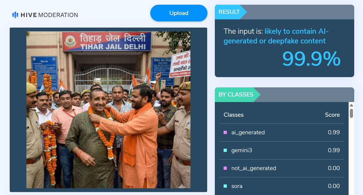 ವೈರಲ್ ಚಿತ್ರವನ್ನು ವಿವಿಧ ಎಐ ಪತ್ತೆ ಪರಿಕರಗಳ ಮೂಲಕ ಪರೀಕ್ಷಿಸಲಾಗಿದೆ.