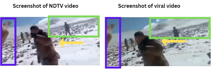 ವ್ಯಾಪಕವಾಗಿ ಹರಡಿದ ಈ ವೀಡಿಯೋದ ಕೀಫ್ರೇಮ್ಗಳನ್ನು ತುಲನೆ ಮಾಡೊದಾಗ, ಈ ದೃಶ್ಯ ಒಂದೇ ಆಗಿರುವುದು ನಮಗೆ ತಿಳಿದುಬಂದಿದೆ. ಇದರಿಂದ ಈ ವೀಡಿಯೋ 2 ವರ್ಷ ಹಳೆಯದಾಗಿದ್ದು, ಡಿಸೆಂಬರ್ 9ರಂದು ಚೀನ-ಭಾರತೀಯ ಸೈನಿಕರ ನಡುವಿನ ಕಾದಾಟದ್ದಲ್ಲ ಎಂದು ಗೊತ್ತಾಗಿದೆ.
