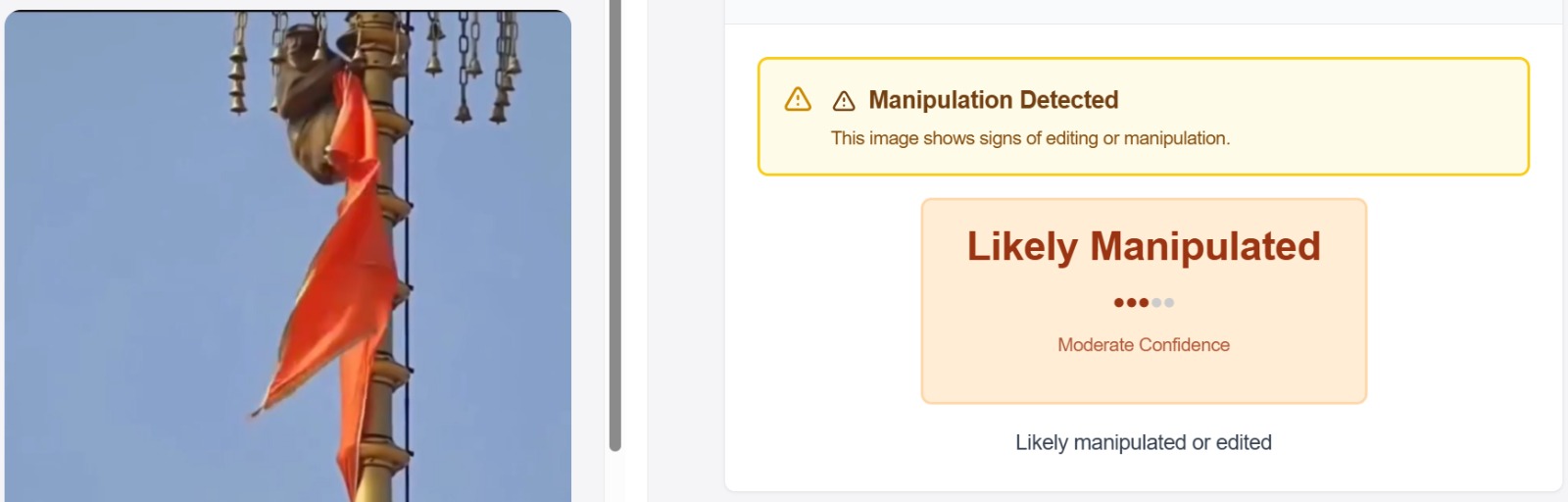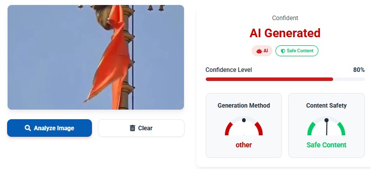 ವಾಸ್ ಇಟ್ ಎಐ ಮೂಲಕ ಪರಿಶೀಲಿಸಿದಾಗ, ಕಪಿ ಧ್ವಜ ಕಂಬದ ಮೇಲಿರುವ ಫೋಟೋಗಳು ಎಐ ಮೂಲಕ ರಚಿಸಲಾಗಿದೆ ಎಂಬುದನ್ನು ಪ್ರತಿಪಾದಿಸಿದೆ.
