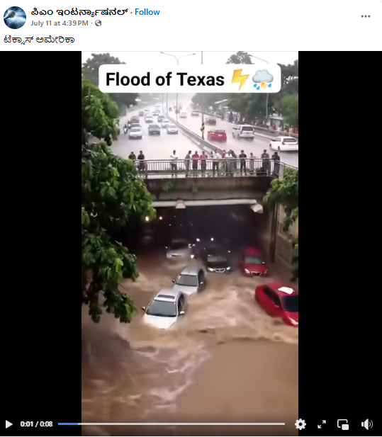 ಅಮೆರಿಕದ ಟೆಕ್ಸಾಸ್ ನಲ್ಲಿ ಪ್ರವಾಹವುಂಟಾಗಿದೆ ಎಂದು ವೀಡಿಯೋ ಒಂದನ್ನು ಸಾಮಾಜಿಕ ಮಾಧ್ಯಮದಲ್ಲಿ ಹಂಚಿಕೊಳ್ಳಲಾಗುತ್ತಿದೆ.