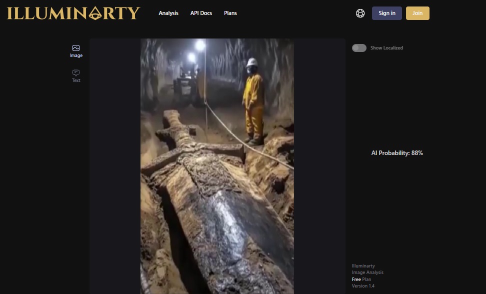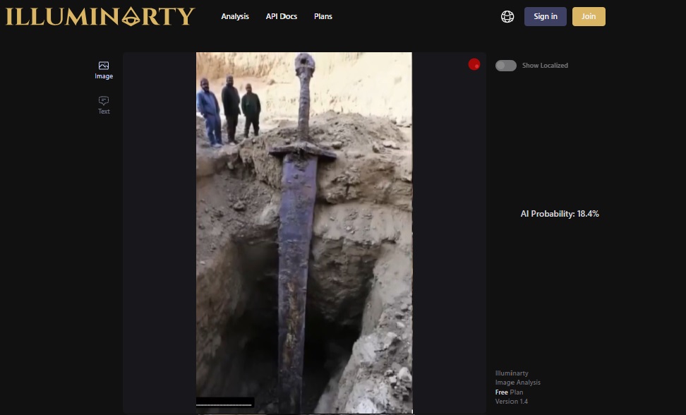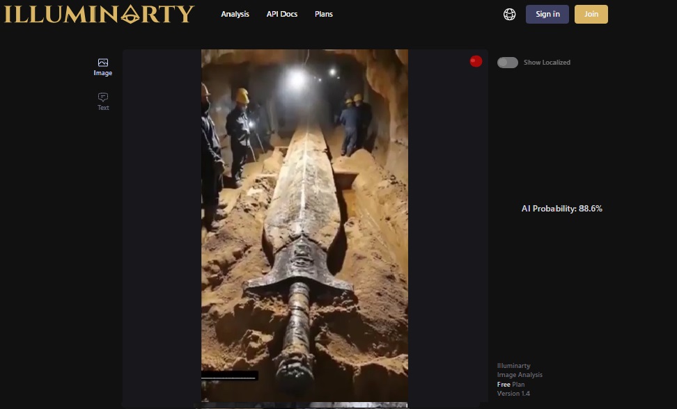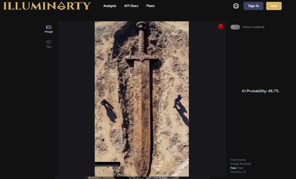 ಆರ್ಟಿಫಿಶಿಯಲ್ ಇಂಟೆಲಿಜೆನ್ಸ್ ಪರಿಶೋಧಕಗಳ ಮೂಲಕ ಶೋಧ ನಡೆಸಿದಾಗ ವೈರಲ್ ಫೊಟೋಗಳು ಎಐನಿಂದ ಮಾಡಲ್ಪಟ್ಟಿವೆ ಎಂದು ಹೇಳಿವೆ. ಆದ್ದರಿಂದ ಕುಂಭಕರ್ಣನ ಖಡ್ಗ ಸಿಕ್ಕಿದೆ ಎಂಬ ಹೇಳಿಕೆ ತಪ್ಪು ಇದು ತಿರುಚಿದ ಫೋಟೋ ಎಂದು ನ್ಯೂಸ್ಚೆಕರ್ ಕಂಡುಕೊಂಡಿದೆ.