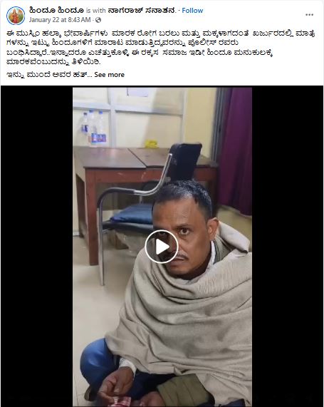 ಮುಸ್ಲಿಮರು ಮಾರಕ ರೋಗಕ್ಕಾಗಿ ಮತ್ತು ಮಕ್ಕಳಾಗದಂತೆ ಖರ್ಜೂರದಲ್ಲಿ ಮಾತ್ರೆ ಇಟ್ಟು ಹಿಂದೂಗಳಿಗೆ ಮಾರಾಟ ಮಾಡುತ್ತಿದ್ದಾರೆ ಎಂಬಂತೆ ವೀಡಿಯೋ ಜೊತೆಗೆ ಹೇಳಿಕೆಯೊಂದನ್ನು ಸಾಮಾಜಿಕ ಮಾಧ್ಯಮದಲ್ಲಿ ಹಂಚಿಕೊಳ್ಳಲಾಗುತ್ತಿದೆ.
