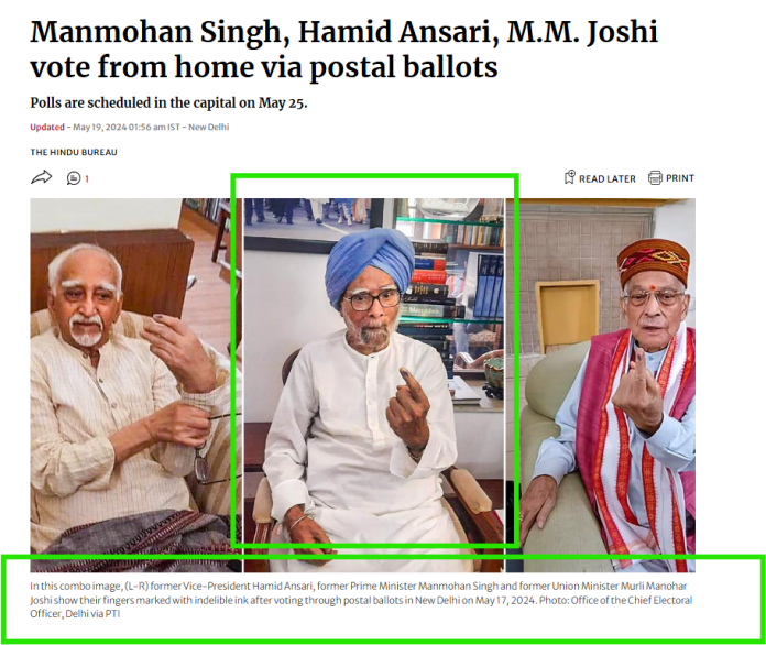 ಆಗಸ್ಟ್ 2023 ರಲ್ಲಿ, ಮನಮೋಹನ್ ಸಿಂಗ್ ಅವರು ಗಾಲಿಕುರ್ಚಿಯಲ್ಲಿ ರಾಜ್ಯಸಭಾ ಕಲಾಪಗಳಿಗೆ ಹಾಜರಾಗುವ ಮೂಲಕ ಸುದ್ದಿಯಾಗಿದ್ದರು. ಈ ವರ್ಷದ ಆರಂಭದಲ್ಲಿ, ಲೋಕಸಭಾ ಚುನಾವಣೆಯಲ್ಲಿ ಅಂಚೆ ಮತಪತ್ರಗಳ ಮೂಲಕ ಮತ ಚಲಾಯಿಸಿದ ನಂತರ ಶಾಯಿಯಿದ್ದ ಬೆರಳುತೋರಿಸುವ ಭಾರತದ ಮಾಜಿ ಪ್ರಧಾನಿಯ ಫೋಟೋ ಕೂಡ ಆನ್ ಲೈನ್ ನಲ್ಲಿ ಕಾಣಿಸಿಕೊಂಡಿತ್ತು.