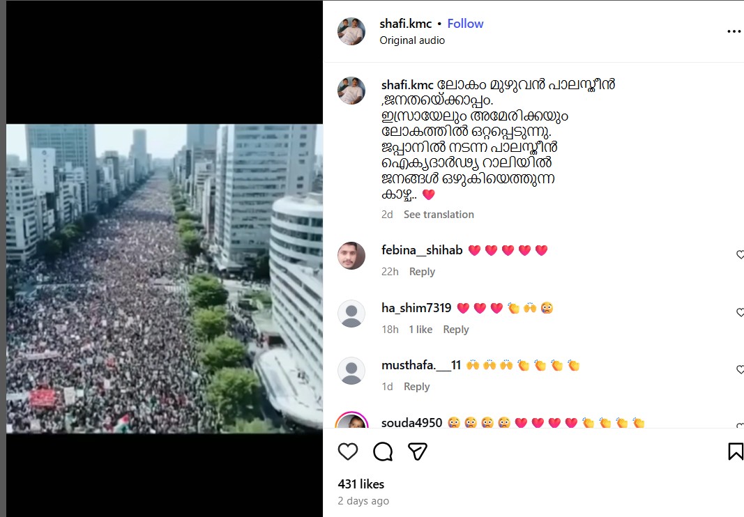 ജപ്പാനിൽ നടന്ന പാലസ്തീൻ അനുകൂല കൂറ്റൻ റാലിയുടെ ദൃശ്യങ്ങളാണെന്ന് അവകാശ വാദത്തോടെ ഒരു വീഡിയോ സമൂഹ മാധ്യമങ്ങളിൽ വൈറലാവുന്നുണ്ട്.