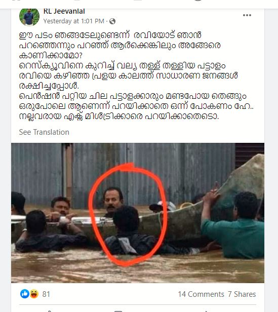 ഞങ്ങൾ കാണുമ്പോൾ RL Jeevanlalന്റെ പോസ്റ്റിന് 7 ഷെയറുകൾ ഉണ്ടായിരുന്നു.