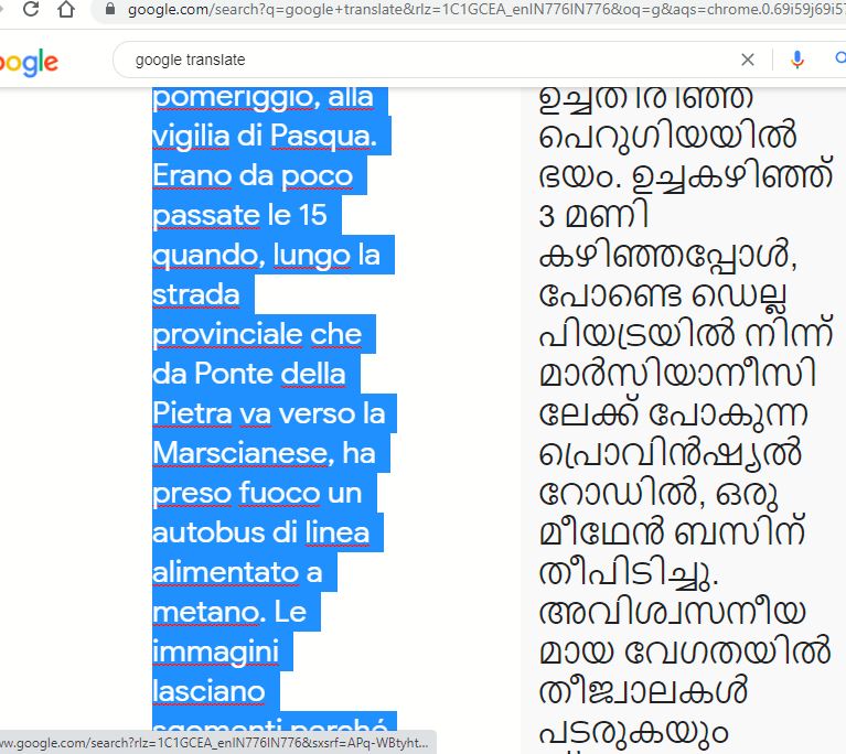 ഇറ്റാലിയൻ ഭാഷയിലുള്ള അതിന്റെ അടിക്കുറിപ്പ് മലയാളത്തിലേക്ക് വിവർത്തനം ചെയ്തപ്പോൾ അത് പറയുന്നത് ഒരു “മീഥേൻ ബസിന് തീപിടിച്ചു, ‘ എന്നാണ്.