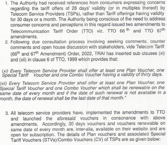 ഈ പത്രക്കുറിപ്പ് വിശദമായി പരിശോധിച്ചപ്പോൾ 28 ദിവസം കാലാവധിയുളള പ്ലാനുകളെല്ലാം 30 ദിവസമുമാക്കി മാറ്റണം എന്ന് അതിൽ ഒരിടത്തും പറഞ്ഞിട്ടില്ല എന്ന് മനസിലായി.