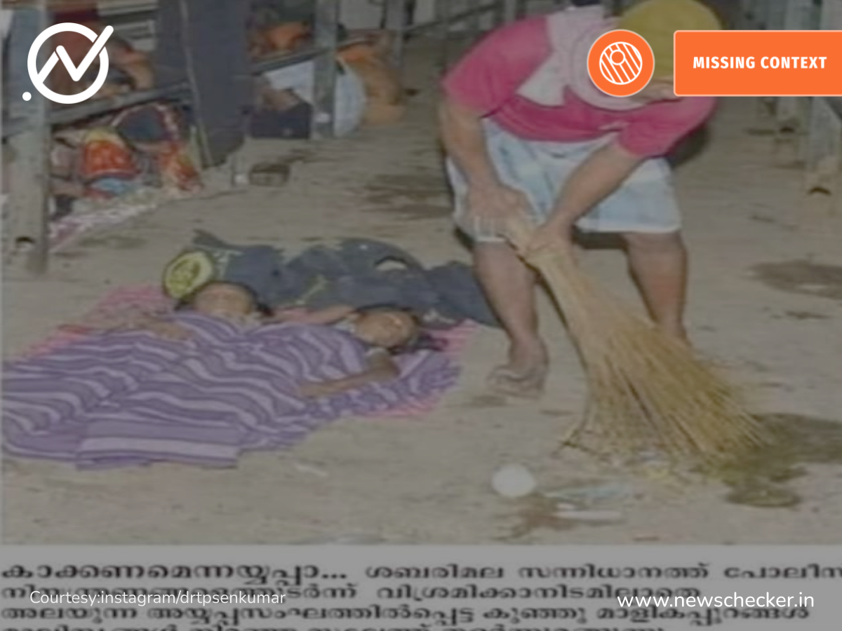 ശബരിമലയിൽ കൊച്ചു മാളികപ്പുറങ്ങൾ വിശ്രമിക്കുന്ന പഴയ ചിത്രം ആഗോള അയ്യപ്പ സംഗമവുമായി ബന്ധപ്പെടുത്തി പ്രചരിക്കുന്നു