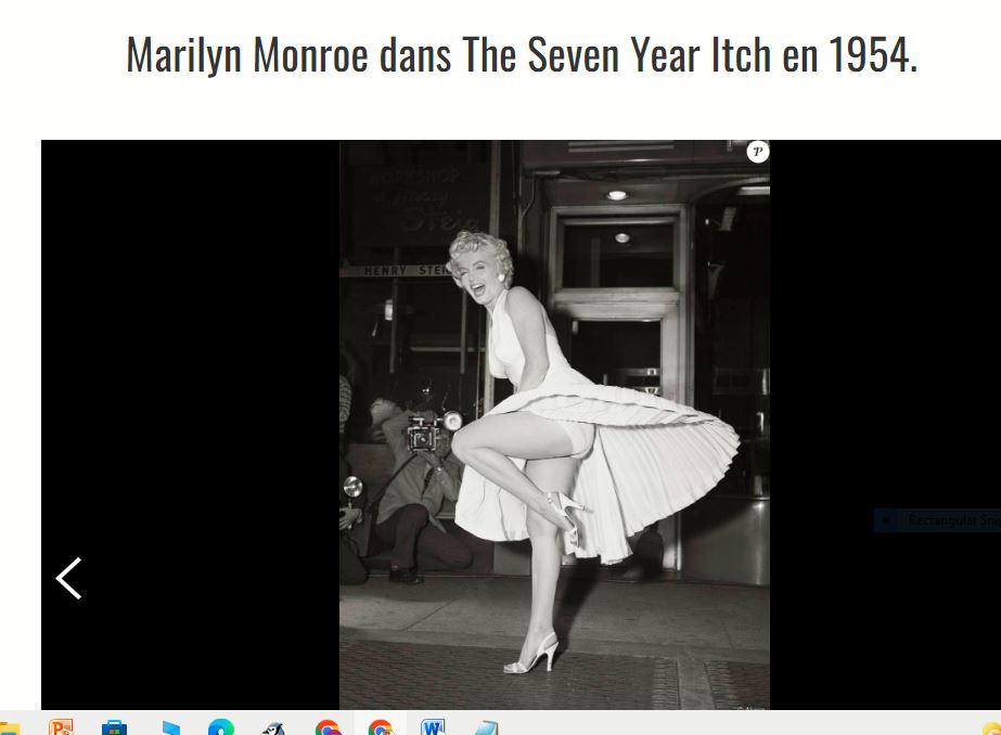 താഴെ ഇടതുവശത്തുള്ള ചിത്രം മെർലിൻ മൺറോയുടെ ഫോട്ടോയാണ്. അതിന്റെ ഒറിജിനൽ പ്യൂർ പീപ്പിൾ എന്ന വെബ്സൈറ്റിൽ കാണാം.