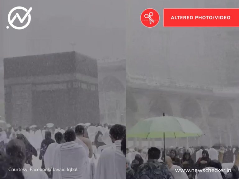 മക്കയിൽ മഞ്ഞുവീഴ്ചയിൽ അകപ്പെട്ട ഭക്തരെ കാണിക്കുന്ന വീഡിയോ ഡിജിറ്റലായി മാറ്റം വരുത്തിയ ക്ലിപ്പാണെന്ന് ഞങ്ങളുടെ അന്വേഷണത്തിൽ കണ്ടെത്തി.