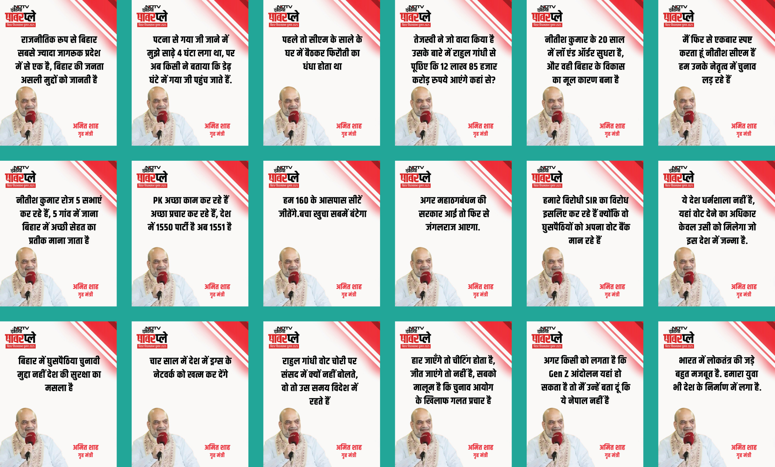 अमित शाह यांच्या नावाने व्हायरल या दाव्याची पडताळणी करण्यासाठी आम्ही कीफ्रेम वापरून रिव्हर्स इमेज सर्च केले. या दरम्यान आम्हाला NDTV इंडिया च्या X अकाउंटवरून 1 नोव्हेंबर 2025 ला पोस्ट केलेला एक थ्रेड सापडला. या थ्रेडमध्ये NDTV PowerPlay कार्यक्रमात अमित शाह यांनी केलेल्या प्रमुख विधानांचे ग्राफिक्स होते.