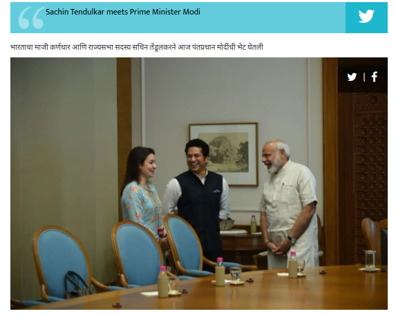 Narendramodi.in या वेबसाईटवर देखील पंतप्रधान नरेंद्र मोदी आणि सचिन तेंडुलकर यांच्या भेटीचे फोटो अपलोड करण्यात आले होते.