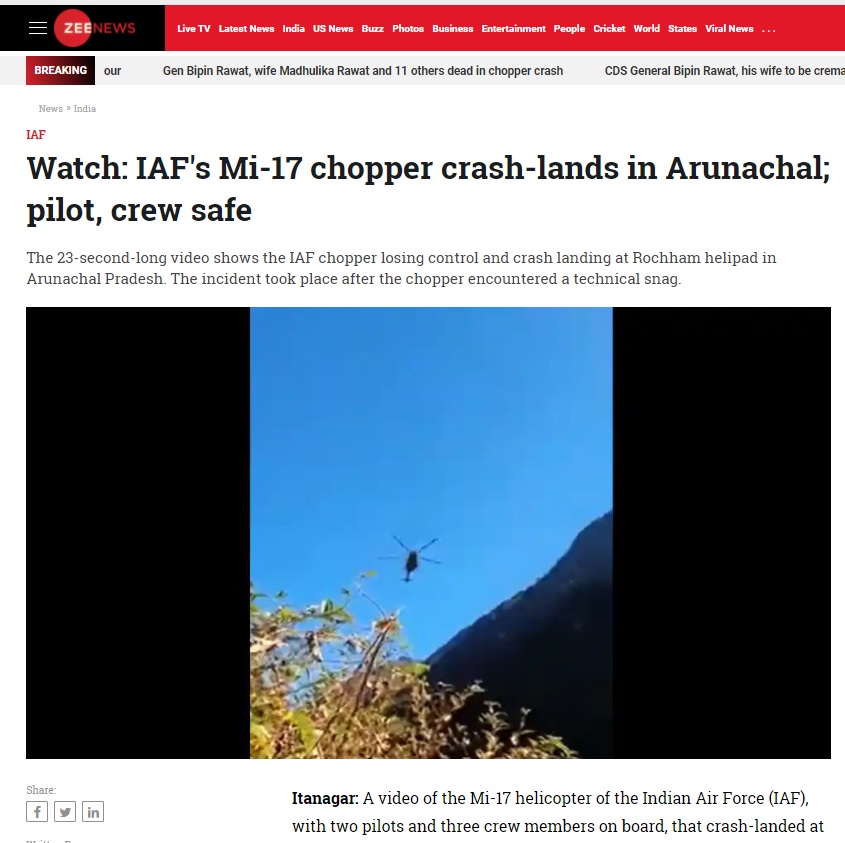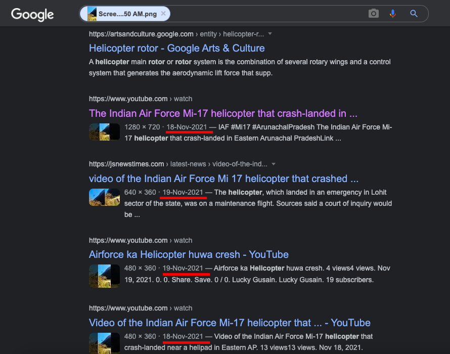 अधिक शोध घेत असताना, आम्हाला Zee24 Taas च्या YouTube चॅनेलवर Mi 17 च्या क्रॅश लँडिंगचा असाच व्हिडिओ आढळला, जो नोव्हेंबर 2021 रोजी अपलोड केला गेला.