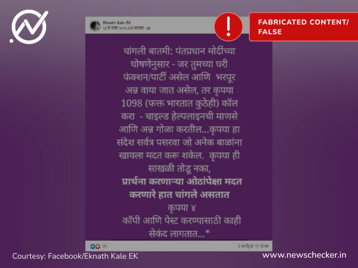 चाईल्डलाईनचा १०९८ हा नंबर खरंच उरलेले अन्न गोळा करून त्याचे वितरण करते ? जाणून घ्या सत्य काय आहे