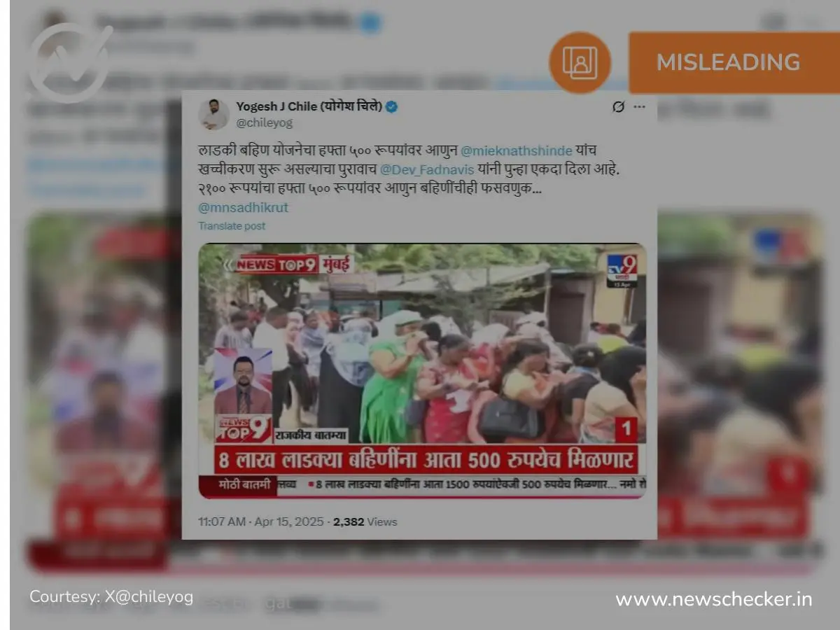 महाराष्ट्रात २१०० चा हप्ता ५०० वर आणून लाडक्या बहिणींची फसवणूक सुरु आहे, असा दावा करण्यात आला. आमच्या तपासात हा दावा दिशाभूल करणारा असल्याचे स्पष्ट झाले.