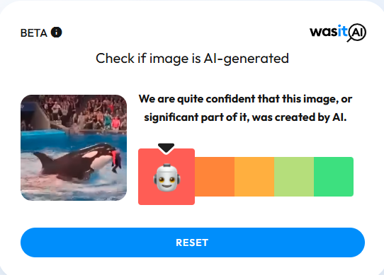 ਹੋਰ ਪੁਸ਼ਟੀ ਦੇ ਲਈ, ਅਸੀਂ WasItAI ਵਰਗੇ AI ਖੋਜ ਟੂਲ ਦੀ ਮਦਦ ਨਾਲ ਵਾਇਰਲ ਵੀਡੀਓ ਦੇ ਕੁਝ ਫਰੇਮਾਂ ਦੀ ਖੋਜ ਕੀਤੀ। WasItAI ਨੇ ਆਪਣੇ ਵਿਸ਼ਲੇਸ਼ਣ ਵਿੱਚ ਸਪੱਸ਼ਟ ਕੀਤਾ ਕਿ ਤਸਵੀਰ ਜਾਂ ਇਸਦਾ ਇੱਕ ਵੱਡਾ ਹਿੱਸਾ AI ਦੀ ਮਦਦ ਨਾਲ ਬਣਾਇਆ ਗਿਆ ਸੀ।