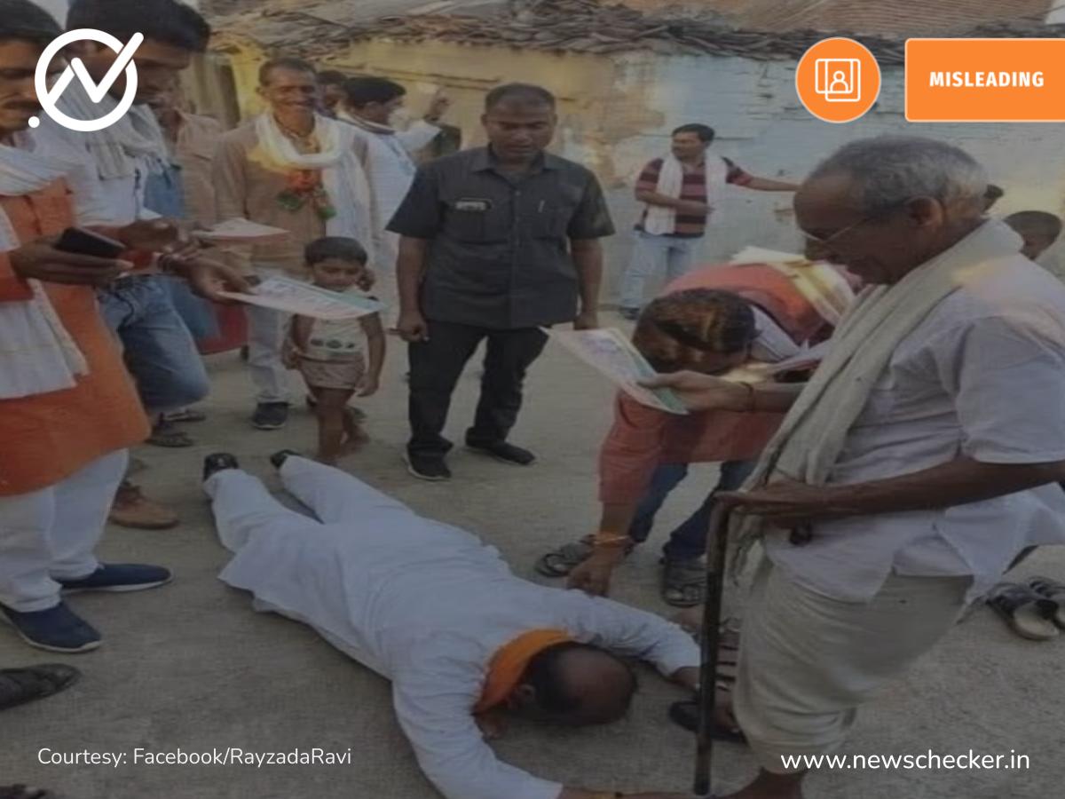 ਸੋਸ਼ਲ ਮੀਡੀਆ ‘ਤੇ ਇੱਕਤਸਵੀਰ ਵਾਇਰਲ ਹੋ ਰਹੀ ਹੈ ਜਿਸ ਵਿੱਚ ਇੱਕ ਸਿਆਸਤਦਾਨ ਇੱਕ ਬਜ਼ੁਰਗ ਆਦਮੀ ਦੇ ਪੈਰਾਂ ‘ਤੇ ਡਿੱਗ ਕੇ ਵੋਟਾਂ ਮੰਗਦਾ ਦਿਖਾਈ ਦੇ ਰਿਹਾ ਹੈ। ਇਸ ਨੂੰ ਬਿਹਾਰ ਵਿਧਾਨ ਸਭਾ ਚੋਣਾਂ ਨਾਲ ਜੋੜਕੇ ਸ਼ੇਅਰ ਕੀਤਾ ਜਾ ਰਿਹਾ ਹੈ। ਦਾਅਵਾ ਕੀਤਾ ਜਾ ਰਿਹਾ ਹੈ ਕਿ ਜਿਵੇਂ ਹੀ ਚੋਣਾਂ ਨੇੜੇ ਆ ਰਹੀਆਂ ਹਨ, ਸਿਆਸਤਦਾਨ ਜਨਤਾ ਦੇ ਪੈਰਾਂ ‘ਤੇ ਡਿੱਗ ਕੇ ਵੋਟਾਂ ਦੀ ਭੀਖ ਮੰਗਣ ਲੱਗ ਪਏ ਹਨ। ਇਹ ਤਸਵੀਰ ਮੱਧ ਪ੍ਰਦੇਸ਼ ਦੀ ਅਤੇ ਪੰਜ ਸਾਲ ਪੁਰਾਣੀ ਹੈ। ਇਸ ਤਸਵੀਰ ਨੂੰ ਬਿਹਾਰ ਵਿਧਾਨ ਸਭਾ ਚੋਣਾਂ ਨਾਲ ਜੋੜ ਕੇ ਗੁੰਮਰਾਹਕੁੰਨ ਦਾਅਵੇ ਨਾਲ ਸਾਂਝਾ ਕੀਤਾ ਜਾ ਰਿਹਾ ਹੈ।