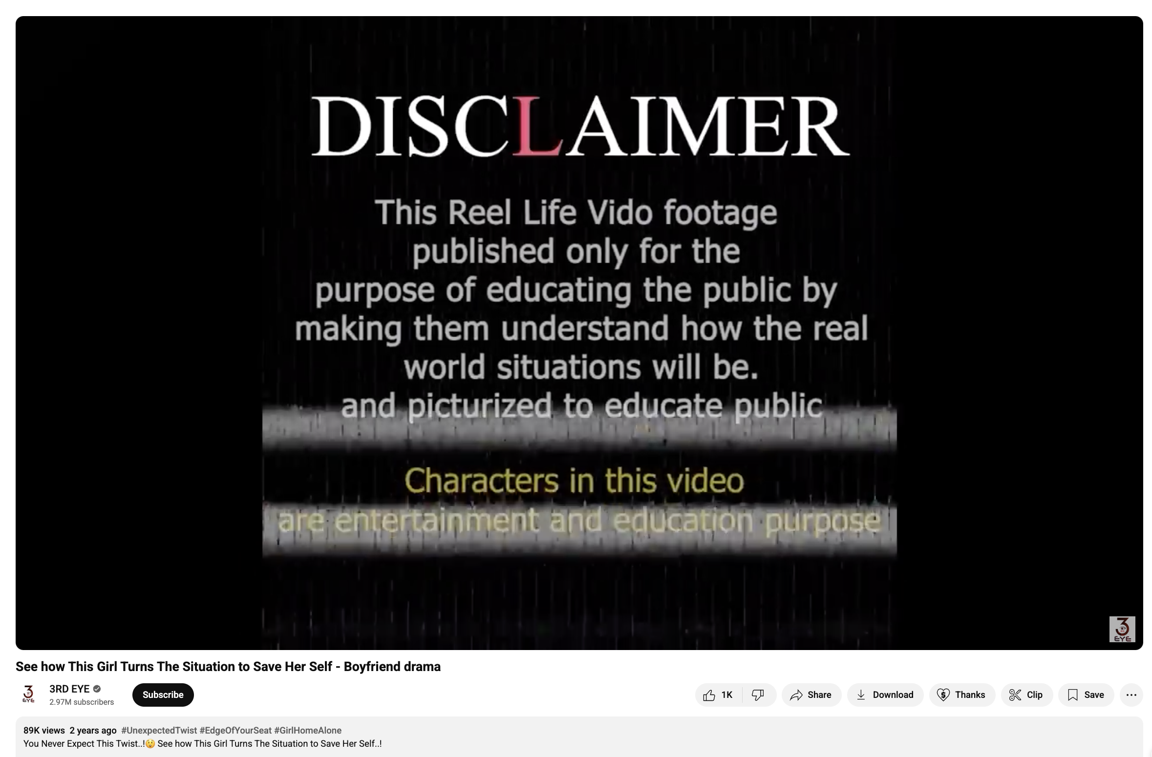 ਸਾਨੂੰ ਵੀਡੀਓ ਦੇ ਅਖੀਰ ‘ਚ Disclaimer ਮਿਲਿਆ ਜਿਸ ਵਿਚ ਦੱਸਿਆ ਗਿਆ ਕਿ ਇਹ ਵੀਡੀਓ ਇੱਕ ਸਕ੍ਰਿਪਟਿਡ ਨਾਟਕ ਹੈ ਜਿਸਨੂੰ ਮਨੋਰੰਜਨ ਦੇ ਅਧਾਰ ‘ਤੇ ਬਣਾਇਆ ਗਿਆ ਸੀ।