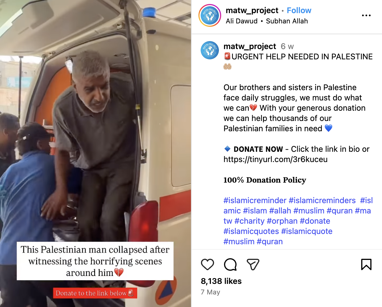 ਸਰਚ ਦੇ ਦੌਰਾਨ ਸਾਨੂੰ ਇਹ ਵੀਡੀਓ ਇੱਕ ਇੰਸਟਾਗ੍ਰਾਮ ਅਕਾਊਂਟ ‘matw_project‘ ਦੁਆਰਾ 7 ਮਈ 2025 ਨੂੰ ਅਪਲੋਡ ਮਿਲੀ। ਇਹ ਵੀਡੀਓ ਇੱਕ ਚੈਰਿਟੀ ਸੰਸਥਾ ਦੁਆਰਾ ਫਲਸਤੀਨ ਵਿੱਚ ਬਚਾਅ ਕਾਰਜਾਂ ਲਈ ਡੋਨੇਸ਼ਨ ਮੰਗਣ ਦੇ ਸੰਦਰਭ ਵਿੱਚ ਅਪਲੋਡ ਕੀਤੀ ਗਈ ਸੀ।